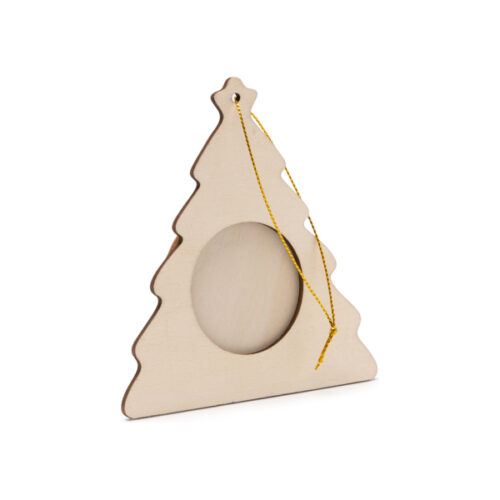 Jouluinen valokuvakehys, puusta valmistettu. Kuvan koko: halkaisija 4,5 cm.