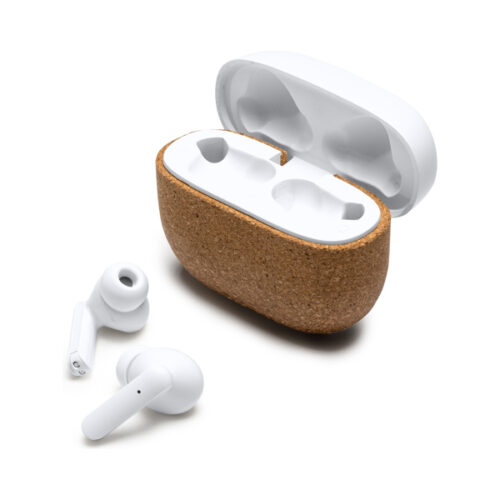 Langattomat nappikuulokkeet kierrätetystä ABS-muovista ja luonnonkorkista. Latauskotelo ladattavalla akulla. Kosketusohjauspaneeli kuulokkeessa. Handsfree-toiminto. C-tyypin liitäntä. Kaapeli sisältyy hintaan.