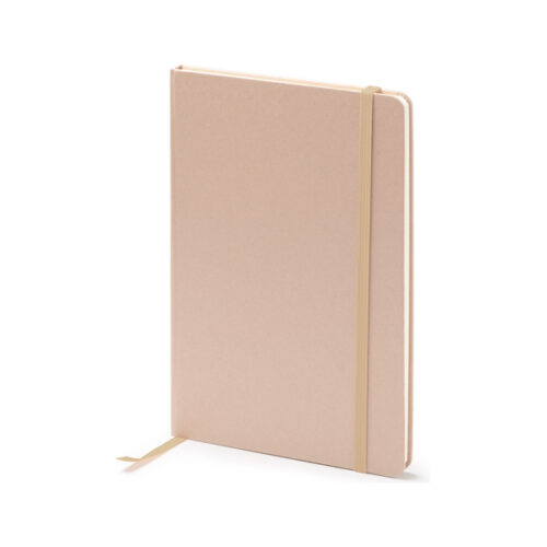 A5-kokoinen muistivihko, jossa kovat kannet hedelmänmuruista. Mukana yhteensopiva kirjanmerkki ja kuminauha. 80 viivoitettua paperiarkkia.
