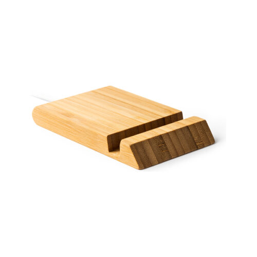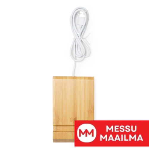 Langaton laturi, joka tukee matkapuhelimia ja tabletteja. Valmistettu bambusta. 5 W teho. Mukana 1 metrin kaapeli.