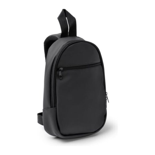 Olkalaukku PU-nahasta. Päälokero ja ulkoinen etutasku vetoketjulla. Pehmustettu olkahihna.
