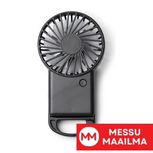 Kädessä pidettävä tuuletin, jossa on karbiinihaka ja tukitoiminto. Kolme nopeutta. Valmistettu kierrätetystä ABS-muovista. Sisältää C-tyypin kaapelin. Toimitetaan ekologisessa laatikossa.