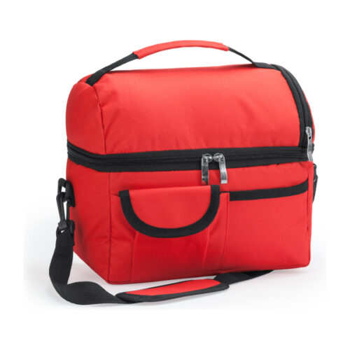 Monikäyttöinen kylmälaukku 600D polyesteriä. Lämpöeristetyt sisälokerot ja käytännölliset ulkotaskut. Säädettävä ja pehmustettu olkahihna karbiinihaalla. Ihanteellinen lämpöeristetty laukku ruoan kuljettamiseen töihin.