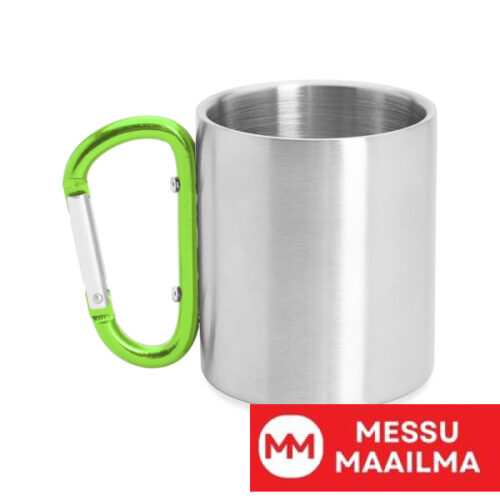Kaksiseinäinen metallinen muki, jossa on karabiinihaka, sopii erinomaisesti kantamiseen. Saatavilla useissa väreissä. Tilavuus 230 ml.