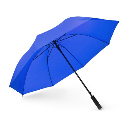 XL-kokoinen sateenvarjo, jossa musta kahva, varsi ja kärjet. Pitkät lasikuituiset rivat. Automaattisesti avautuva nappi. EVA-kahva. Väriin sopiva tarranauhakiinnitys. Halkaisija 130 cm.