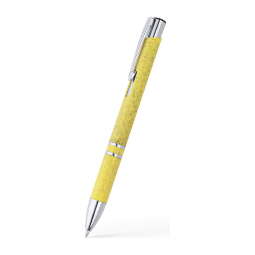 Vehnäkuidusta ja ABS-muovista valmistettu painonappikynä, hopeiset yksityiskohdat. Sininen jumbo-täyttöpakkaus.