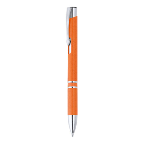 Vehnäkuidusta ja ABS-muovista valmistettu painonappikynä, hopeiset yksityiskohdat. Sininen jumbo-täyttöpakkaus.