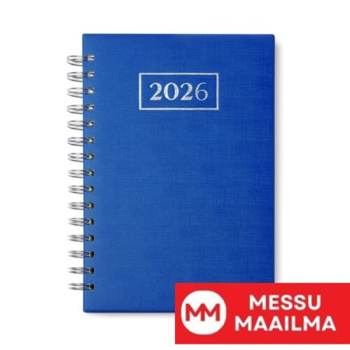 A5-kokoinen spiraalimainen rengaspäiväkirja. Pehmustetut PU-kannet, joissa matala kohokuvio. 348 arkkia ja 4 karttasivua. Paperin paino: 60 g/m². Valkoinen paperi. Päivä-/sivuasettelu leikatuilla kulmilla.