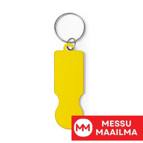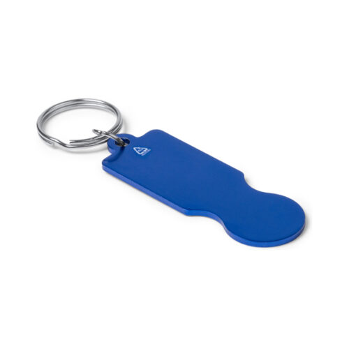 Kierrätetystä alumiinista valmistettu kolikkoavaimenperä, joka sopii erinomaisesti ostoskärryihin.