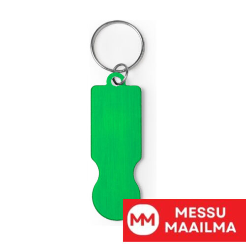Kierrätetystä alumiinista valmistettu kolikkoavaimenperä, joka sopii erinomaisesti ostoskärryihin.