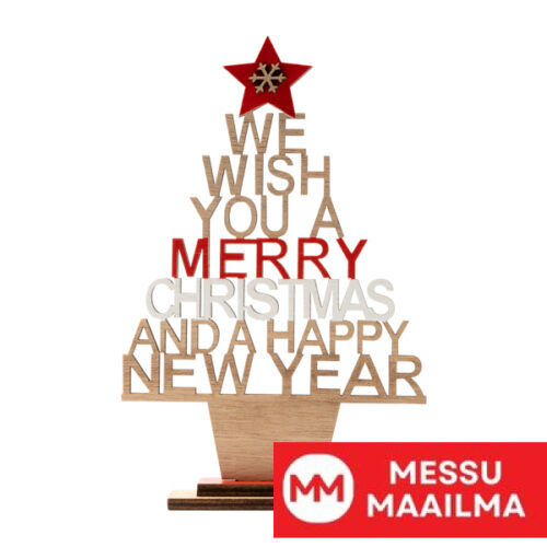 Puinen joulukuusi viestillä. Irrotettava jalusta. Täydellinen joulukoriste.