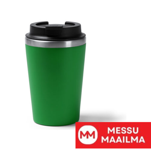 Kaksiseinäinen kuppi. Sisäpuoli 304 ruostumatonta terästä, ulkopinta PP. Kierrekorkki annostelijalla. Tilavuus: 350 ml. Pakkaus design-rasiassa.