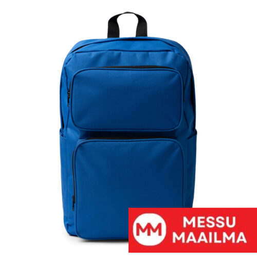 Reppu 600D RPET -materiaalista. Tuplavetoketjullinen etutasku ja kaksi sivutaskua. Pehmustetut kahvat ja selkämys.
