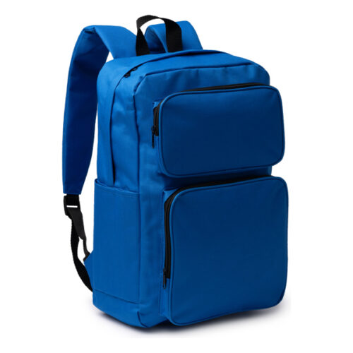 Reppu 600D RPET -materiaalista. Tuplavetoketjullinen etutasku ja kaksi sivutaskua. Pehmustetut kahvat ja selkämys.