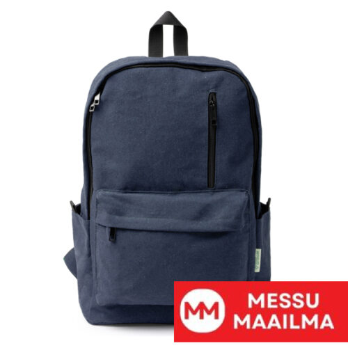Kierrätetystä puuvillasta valmistettu reppu, paino 330 g/m². Suuri päälokero, jossa sisätasku 15″ kannettavalle tietokoneelle. Kaksi vetoketjullista ulkotaskua ja kaksi sivutaskua. Pehmustetut kahvat ja selkäosa. Tilavuus: 20 litraa.