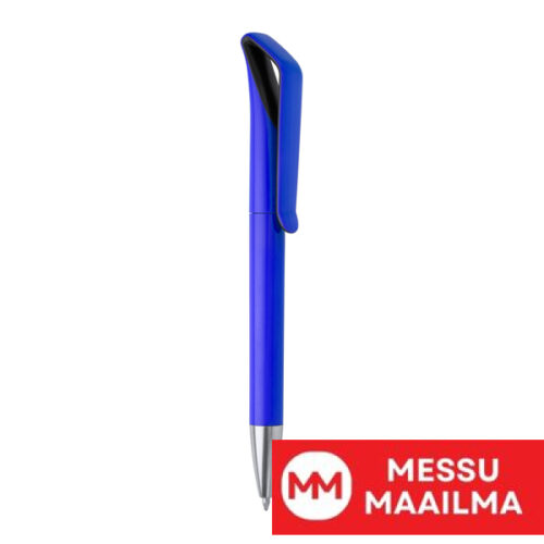 ABS-muovikynä, jossa on kierremekanismi ja kaksivärinen kiiltävä viimeistely. Sininen muste.