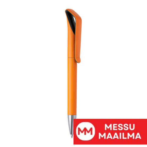 ABS-muovikynä, jossa on kierremekanismi ja kaksivärinen kiiltävä viimeistely. Sininen muste.