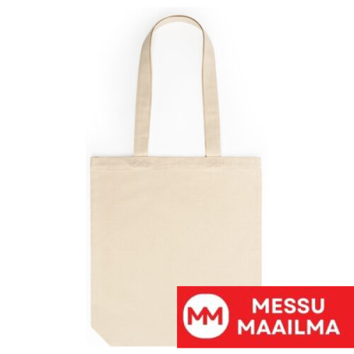 100 % luomupuuvillasta valmistettu kassi, jossa on haara ja käytännölliset 70 cm pitkät kahvat. 280 g/m².