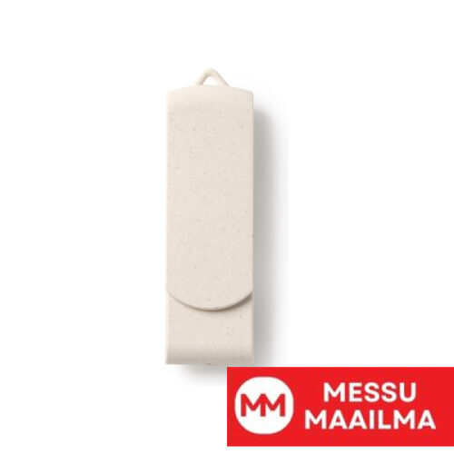 USB-muistitikku, jossa on vehnäkuidusta valmistettu runko ja kääntyvä klipsi. Kapasiteetti 16 Gt.