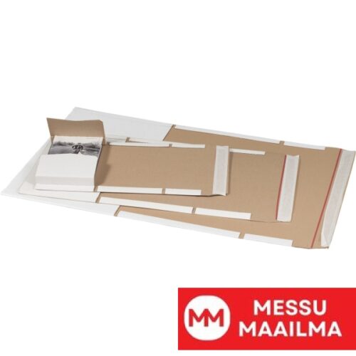 Sopii kirjojen, tekstiilien ja painettujen asiakirjojen käärimiseen. Valkoinen aaltopahvi.