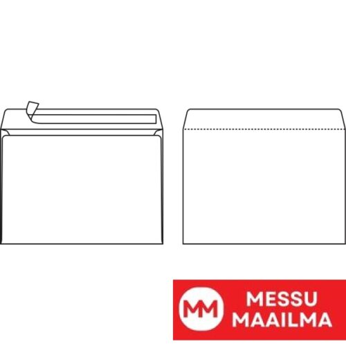 Valkoinen Sober-kirjekuori, jossa on nauha ja pystyläppä. Sober® on vakiosarjamme nimi. Kaikki kirjekuoret ovat valkoisia ja niissä on harmaa sisäpainatus. Jos käyttäjä pyytää ”tavallisia” kirjekuoria, käytetään näitä Sober-kirjekuoria.