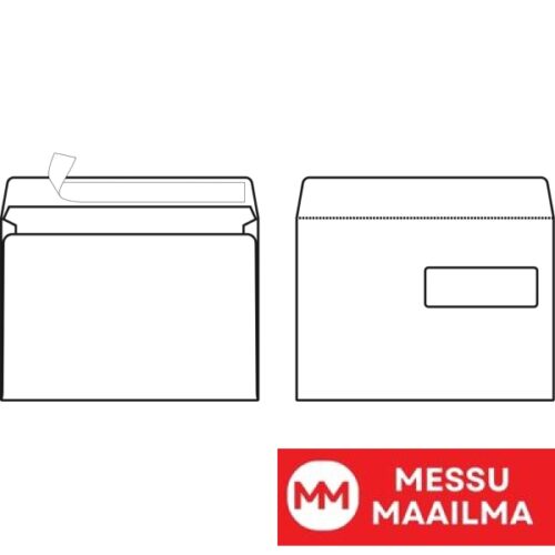 Valkoinen Sober-kirjekuori, jossa on nauha ja pystyläppä. Sober® on vakiosarjamme nimi. Kaikki kirjekuoret ovat valkoisia ja niissä on harmaa sisäpainatus. Jos käyttäjä pyytää ”tavallisia” kirjekuoria, käytetään näitä Sober-kirjekuoria.