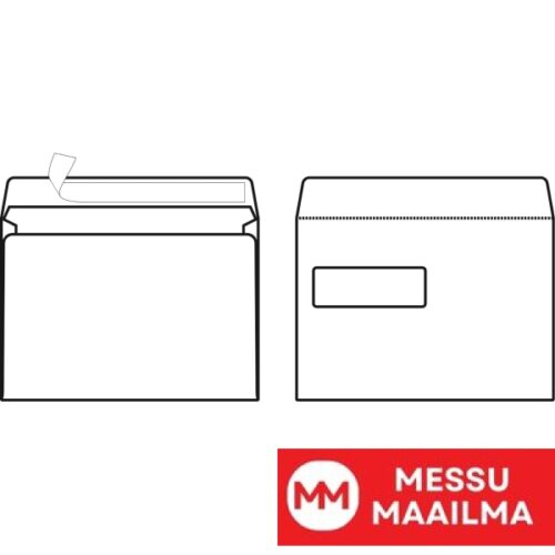 Valkoinen Sober-kirjekuori, jossa on nauha ja pystyläppä. Sober® on vakiosarjamme nimi. Kaikki kirjekuoret ovat valkoisia ja niissä on harmaa sisäpainatus. Jos käyttäjä pyytää ”tavallisia” kirjekuoria, käytetään näitä Sober-kirjekuoria.