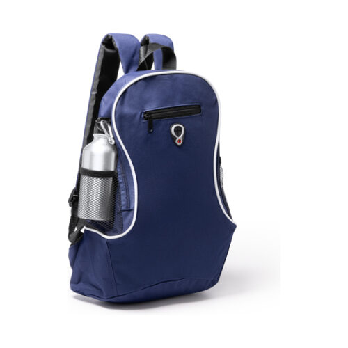 Pieni reppu säädettävillä hihnoilla. 1. – Yläkahva ripustamista varten. 2. – Vetoketjullinen etutasku. 3. – Sivutaskut mikrorei’itettyä kangasta.