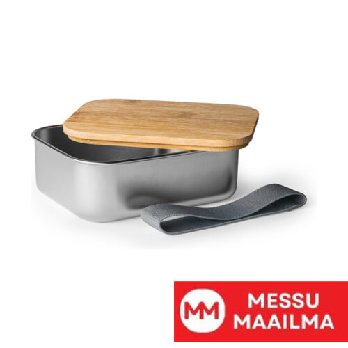Ruostumattomasta teräksestä valmistettu 304-kokoinen lounasrasia, jossa bambukansi ja polyesteristä valmistettu turvavyö. Tilavuus 750 ml. Ihanteellinen yrityksesi personointiin ja mainostamiseen.