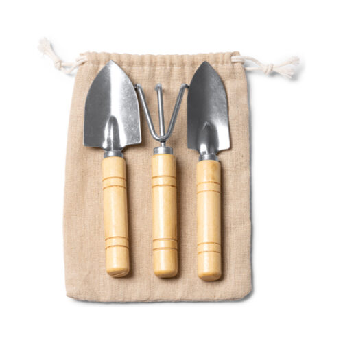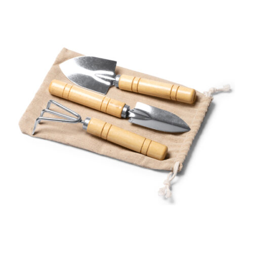 Puutarhasetti, jossa on kolme ruostumattomasta teräksestä valmistettua tarviketta ja bambukahva. Sisältää suuren ja pienen istutusterän sekä haravoinnin. Mukana puuvillapäällinen. Toimitetaan ekologisessa laatikossa.