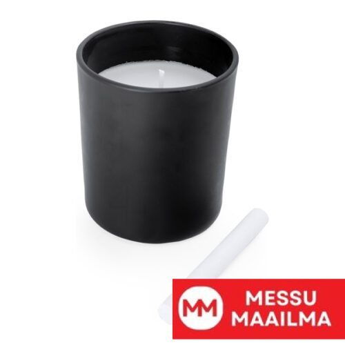 Vaniljantuoksuinen kynttilä pyöreässä mustassa keraamisessa astiassa. Mukana liitu kirjoittamista varten astiaan. Valkoinen kynttilä ja sydänlanka. Vaniljan tuoksu.
