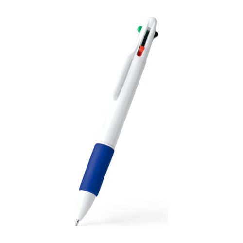 Mainosmateriaalista valmistettu sisäänvedettävä kuulakärkikynä, jossa on neljä mustetta. Runko ABS-muovia ja pehmeä värillinen otepinta. Sininen, musta, punainen ja vihreä muste.