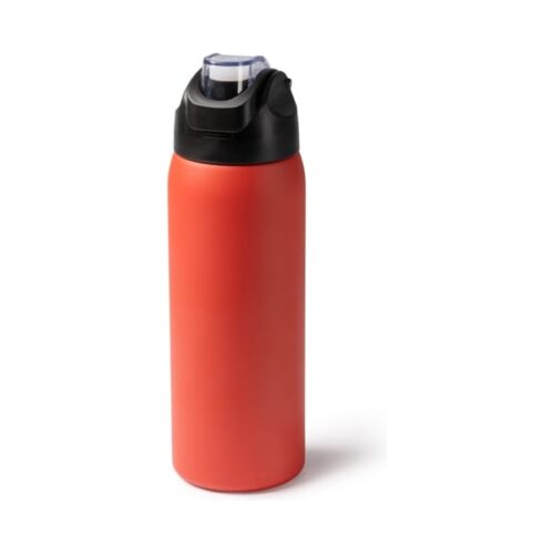 Kaksiseinäinen termospullo, jonka runko on kierrätettyä 304-ruostumatonta terästä. Korkissa on vapautuspainike ja kantokahva. Tilavuus: 930 ml. Pakkaus ekologisessa laatikossa.