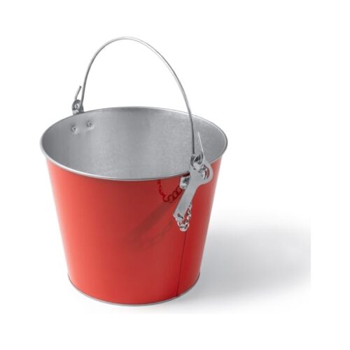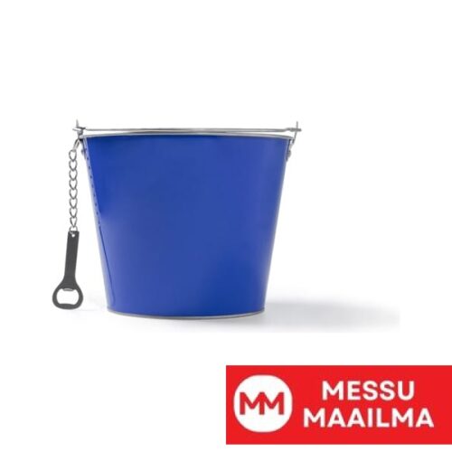 Metallinen värillinen ämpäri, jossa alumiininen pullonavaaja. Tilavuus 6 litraa.