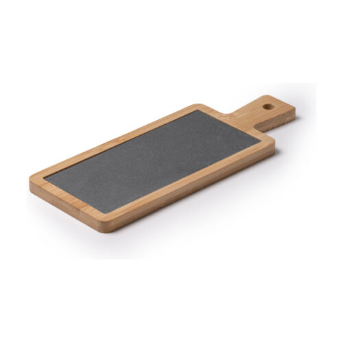 Bambuinen leikkuulauta liuskekivellä on tyylikäs ja toimiva vaihtoehto keittiöösi. Bambusta, kestävästä ja ympäristöystävällisestä materiaalista, valmistettu lauta tarjoaa tukevan ja turvallisen pinnan ruoan leikkaamiseen. Sen suorakaiteen muotoinen muotoilu pyöristetyillä kulmilla tarjoaa suuren työtilan, kun taas sisäänrakennettu liuskekivi antaa tuotteiden esillepanoon gastronomisemman ilmeen. Integroitu kahva helpottaa laudan käsittelyä ja kuljetusta, mikä lisää käyttömukavuutta joka kerta. Tämä leikkuulauta sopii erinomaisesti sekä kotikäyttöön että lahjaksi, sillä se yhdistää toimivuuden ja tyylin yhdessä keittiövälineessä. Pese lauta käsin ja kuivaa se huolellisesti jokaisen käyttökerran jälkeen pidentääksesi sen käyttöikää.