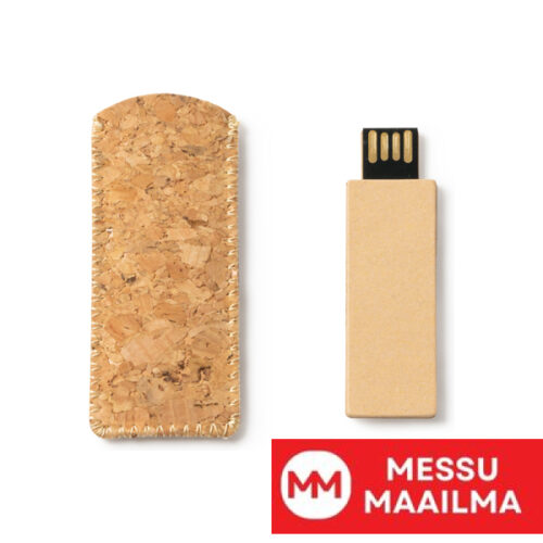 USB-muistitikku kierrätetystä pahvista ja luonnonkorkista valmistetussa kotelossa. Kapasiteetti 16 Gt.