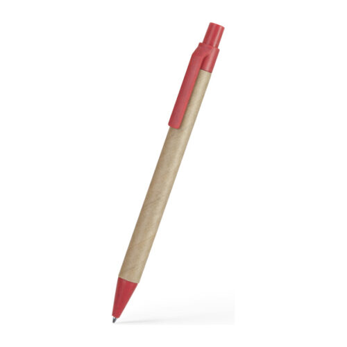 Kierrätetystä pahvista valmistettu kynä, jonka kärki ja klipsi ovat vehnäkuitua ja ABS-muovia. Sininen muste.