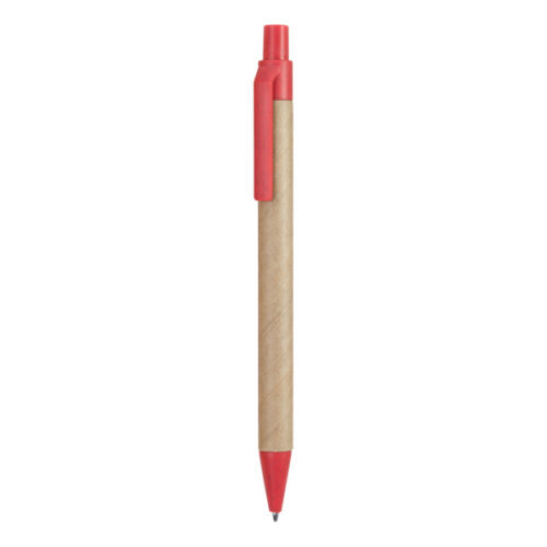 Kierrätetystä pahvista valmistettu kynä, jonka kärki ja klipsi ovat vehnäkuitua ja ABS-muovia. Sininen muste.