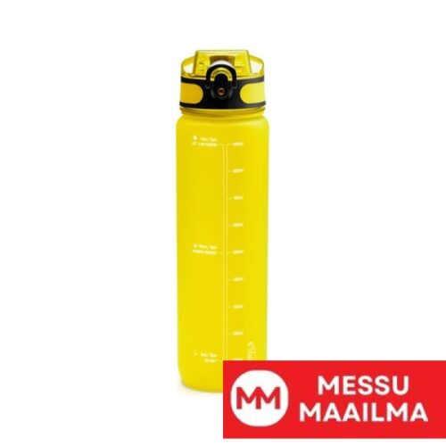 Läpikuultava tritan-pullo, korkki juomanokalla ja yhteensopivalla kantokahvalla. Motivoiva aikamerkintä ja tilavuuden ilmaisin. Tilavuus: 1 l. Pakkaus design-rasiassa.