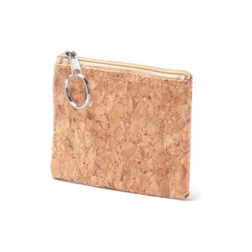 Luonnonkorkista valmistettu käsilaukku, jossa vetoketjun vetimessä hopeinen rengas.
