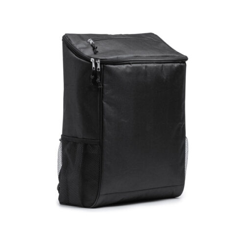 Viileä reppu RPET-materiaalia. Lämpövuori päälokerossa ja tasku läpässä. Sivuilla verkkotaskut. Tilavuus 18 litraa. Pehmustettu selkäosa ja olkahihnat.