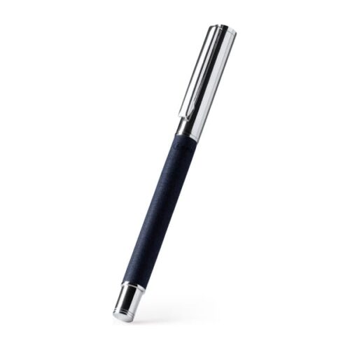 Kuulakärkikynä, jossa metallirunko ja kierrätetty RPET-polyesteri. Sininen muste.