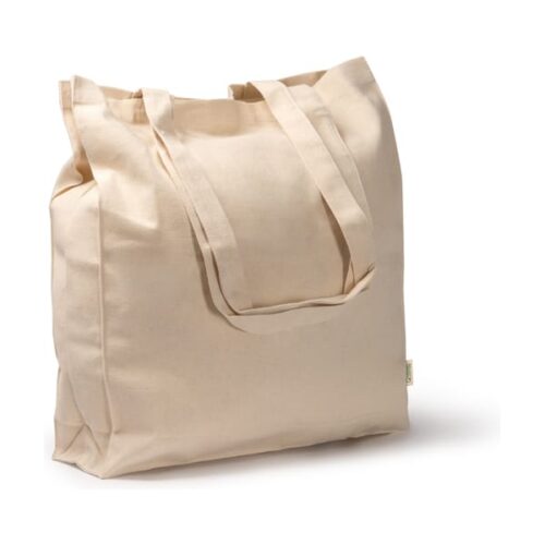 Laukku on valmistettu 100 % luomupuuvillasta, jonka paino on 220 g/m². Pohjassa ja sivuilla on luonnonväriset haarat. 70 cm olkaimet.