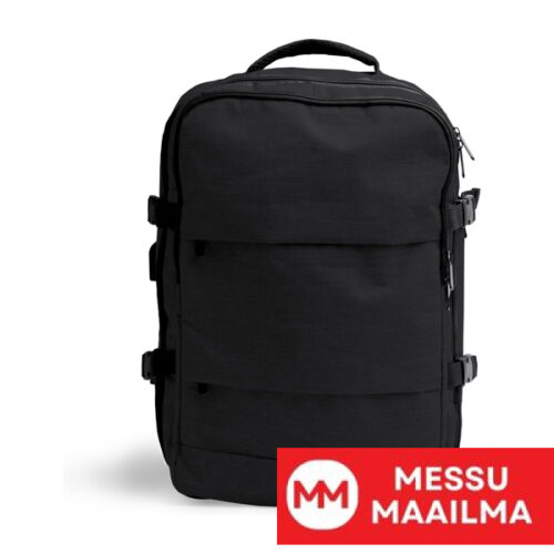 Matkareppu kierrätetystä RPET-polyesteristä. Pehmustettu selkäosa ja kahvat. Kaksi ulkoista etutaskua. Kolme suurta päälokeroa. Päälokero, jossa useita taskuja ja 17,3 tuuman pehmustettu lokero. Lokero, jossa USB-liitäntä varavirtalähteen kytkemistä varten (ei sisälly toimitukseen). Mukana micro-USB-kaapeli. Hengittävä lenkkaritasku. Varkaudenestotasku takana. Vetoketjullinen kantohihna. Tilavuus: 30 l.
