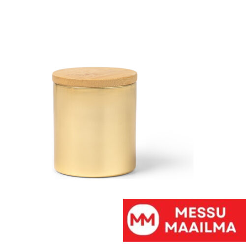 Tuoksukynttilä, jossa metallinen alumiininen astia ja bambuinen kansi. Vaniljan tuoksu. Pakattu ekologiseen rasiaan.