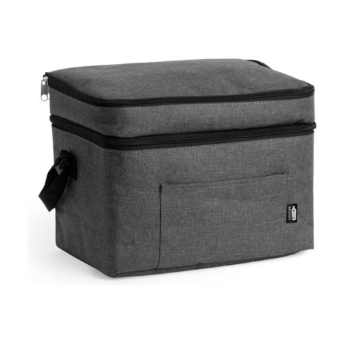 XL-kokoinen kylmälaukku RPET-polyesteriä, meleerattu kuvio. Kaksi lokeroa ja etutasku. Lämpövuori. Enemmän tilaa juomien ja ruoan säilyttämiseen ja kuljettamiseen mukavalla tavalla.