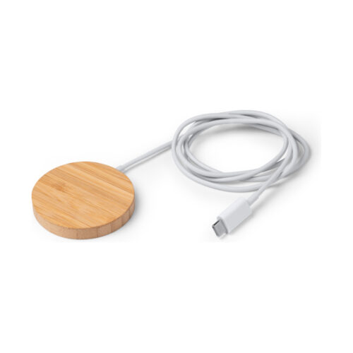 Langaton laturi, jonka päärakenne on bambua ja jossa on magneettinen toiminto. 15 W:n lataus. C-tyypin sisääntulo. Mukana tarrarengas. Toimitetaan ekologisessa laatikossa.