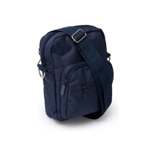 Olkahihna 600D RPET -materiaalia. Päälokerossa sisätasku ja kaksi vetoketjullista etutaskua. Säädettävä hihna metallinhohtoisilla yksityiskohdilla.