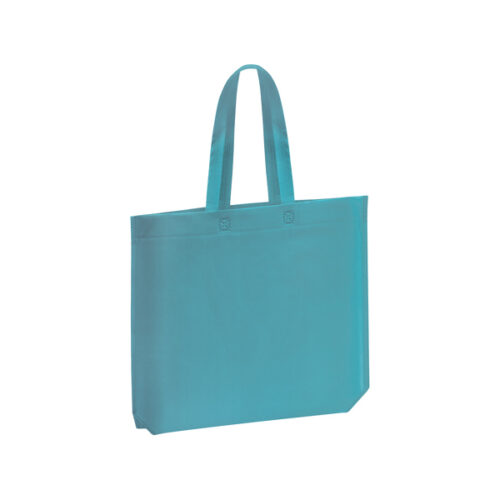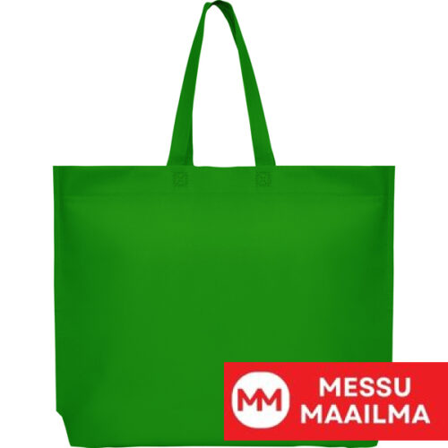 Lämpösaumattu kuitukankaasta valmistettu kassi, jossa on kuusikulmainen haara pohjassa ja pitkä, väriin sopiva kahva.