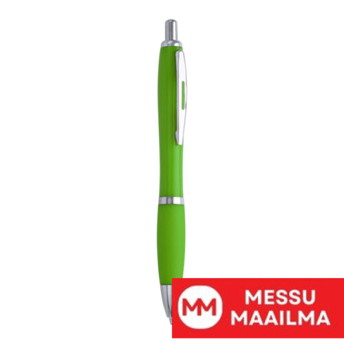 ABS-muovista valmistettu sisäänvedettävä kynä pehmeällä otteella. Sininen muste.